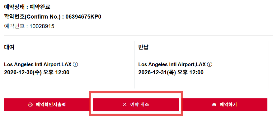 ※ 취소 시에는 Avis 렌터카 한국사무소의 취소 약관이 우선 적용됩니다.